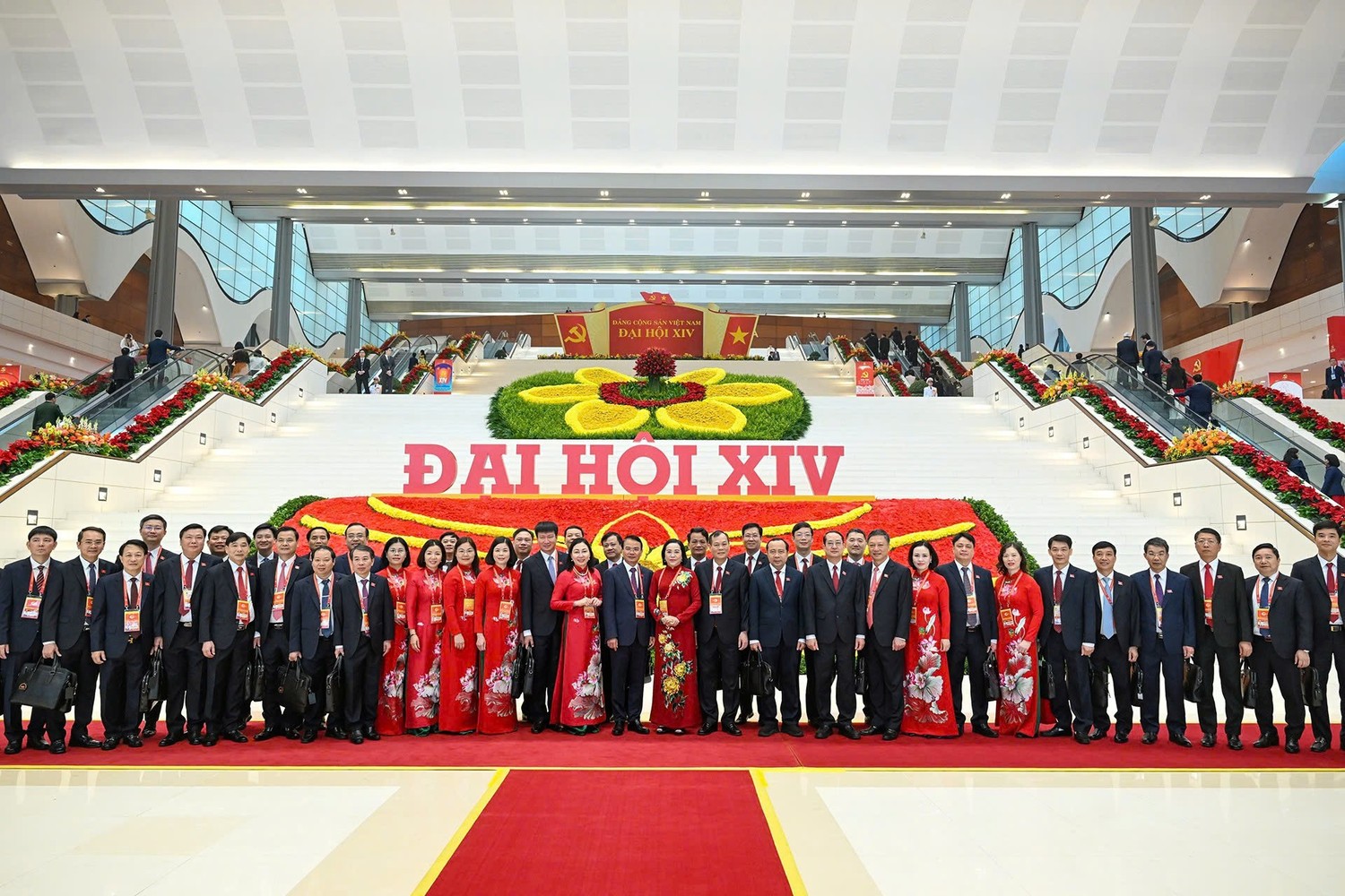 Trước giờ khai mạc, mọi công tác trang trí, khánh tiết tại Trung tâm Hội nghị quốc gia – nơi tổ chức Đại hội XIV của Đảng gần như đã hoàn thành, bảo đảm trang trọng, sẵn sàng đón các đại biểu về dự đại hội.
